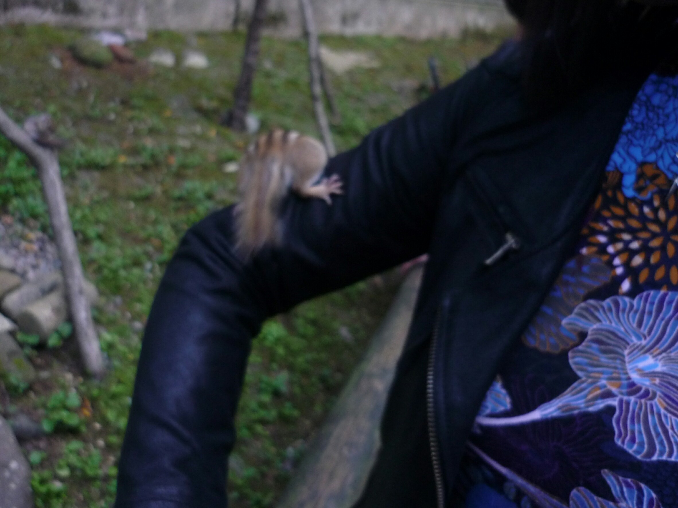 こんな感じでリスにひっつかれる私。