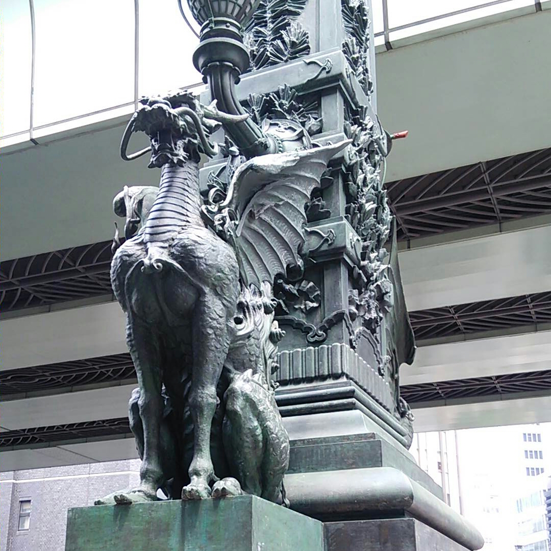 有名な麒麟の像もありました。獅子が持ってるのは昔の東京のマークらしいです。