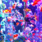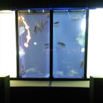 真ん中の水槽が重なってるような場所に行きます。水槽に鏡がはられてて広く見せてるようです。