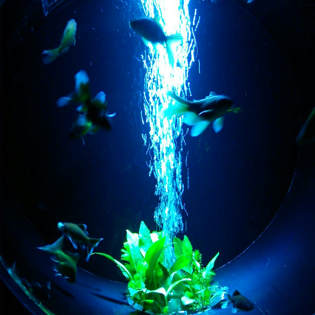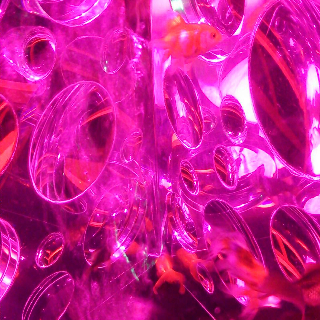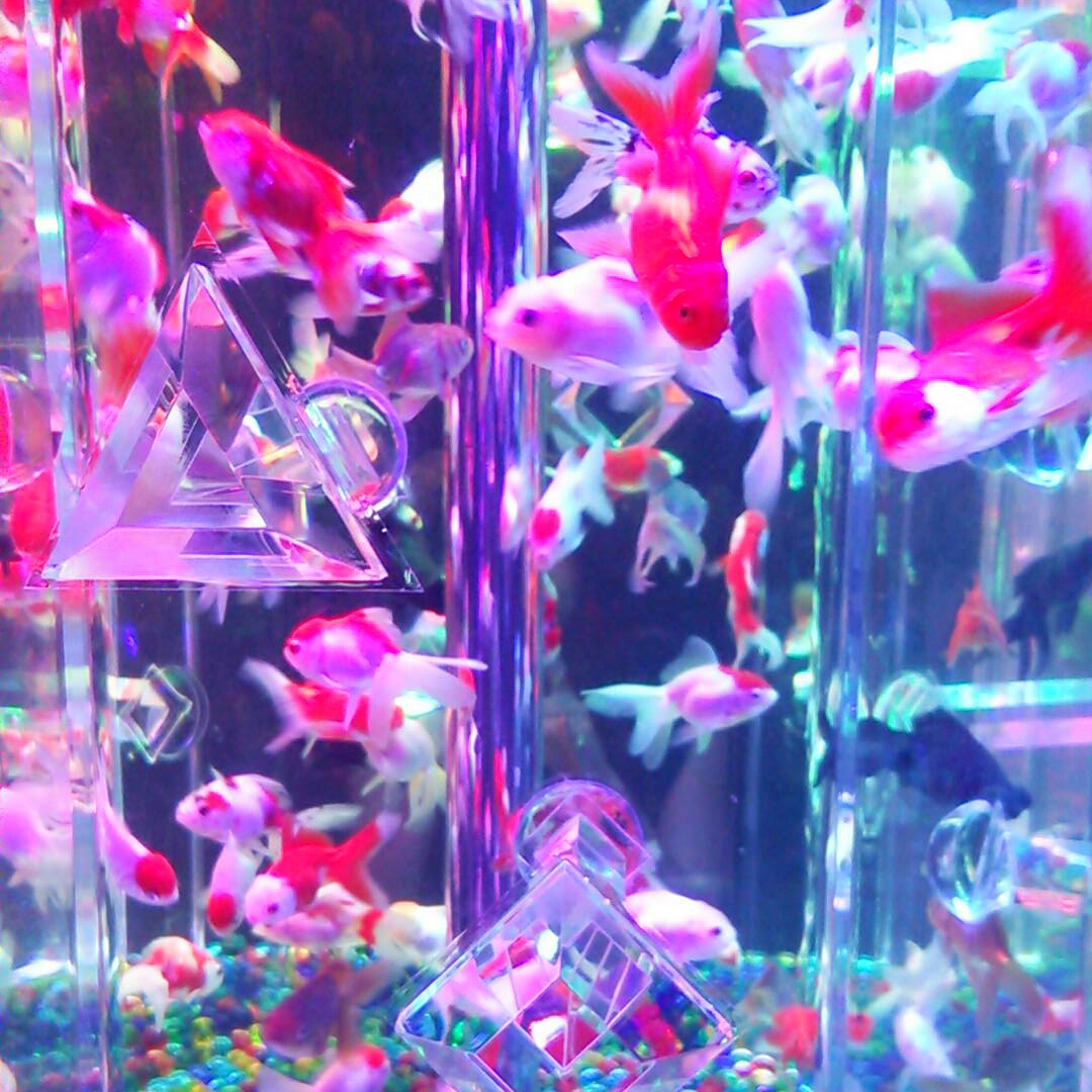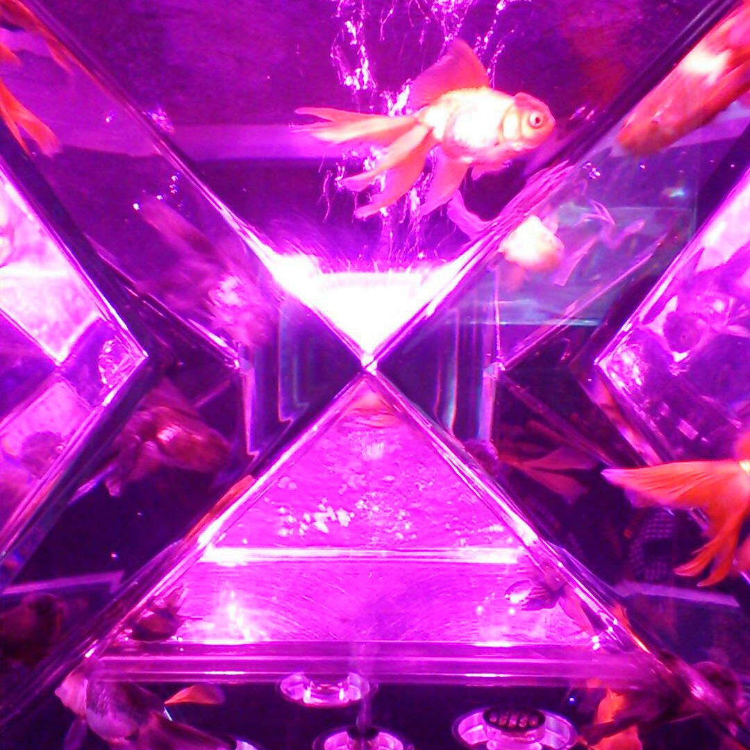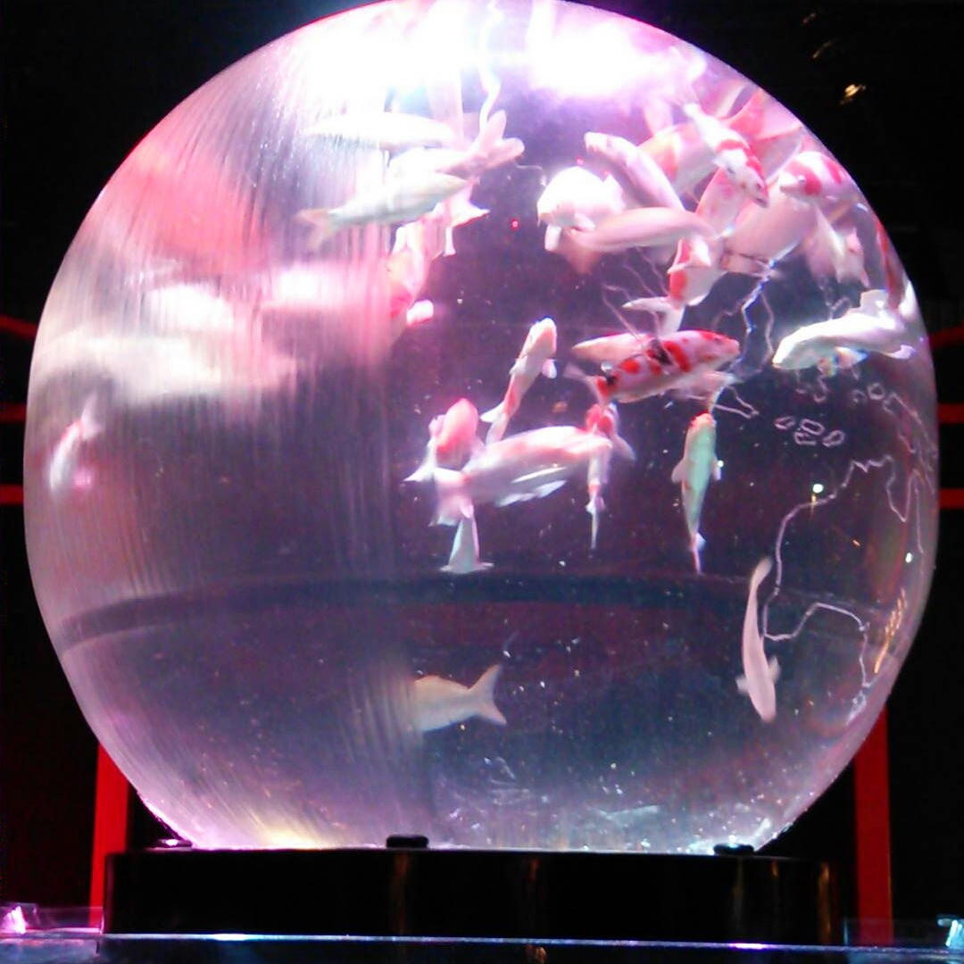 凹凸レンズがくっついてる水槽や変な形した水槽も。