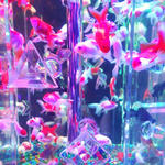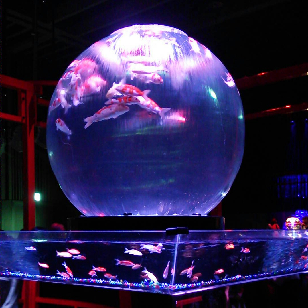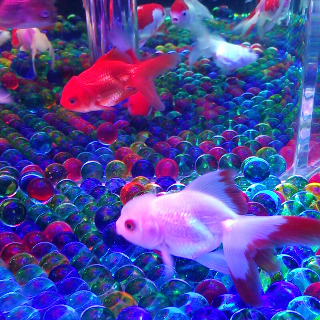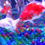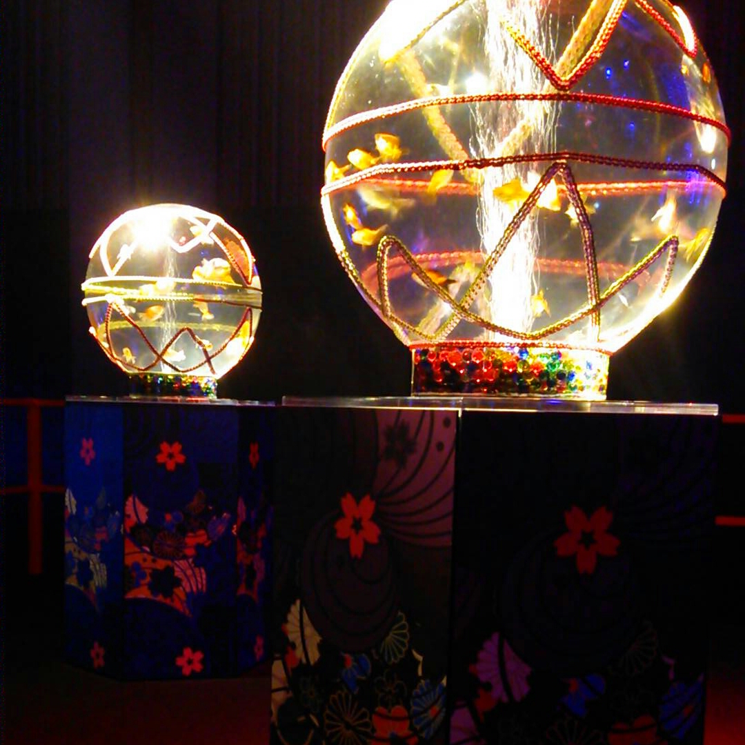 手毬の水槽もかわいい。下が千代紙のようで綺麗。