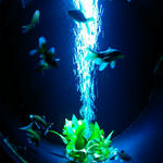 奥にお酒とコラボした水槽。夜になるとバーや音楽イベントをやるみたいですね。