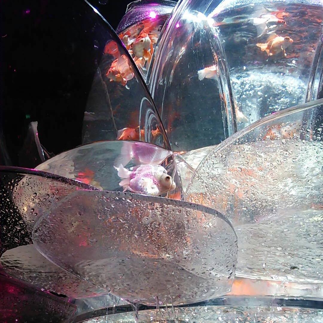 金魚は人口のお魚。“自然界で生きられない代わりに人間の深い愛情を手に入れた”という解説にザワザワします。籠の鳥ならぬ鉢の金魚。