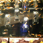 この先は様々な品種の金魚を紹介するコーナー。本当にたくさん種類がいるんですね。白黒赤の斑模様なのが好きだな。