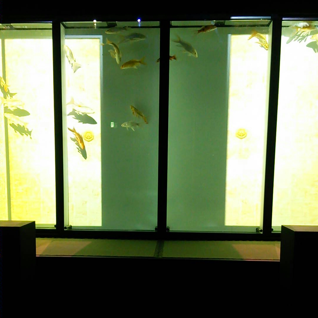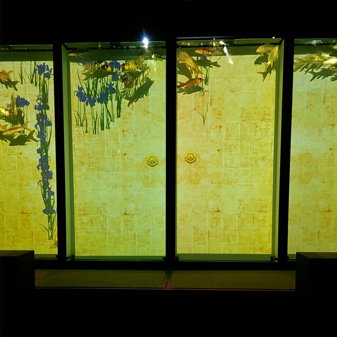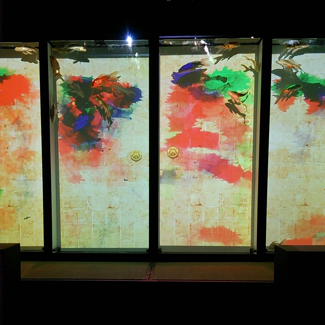最後に襖の水槽を泳ぐ金魚。プロジェクションマッピング的な映像が見れます。