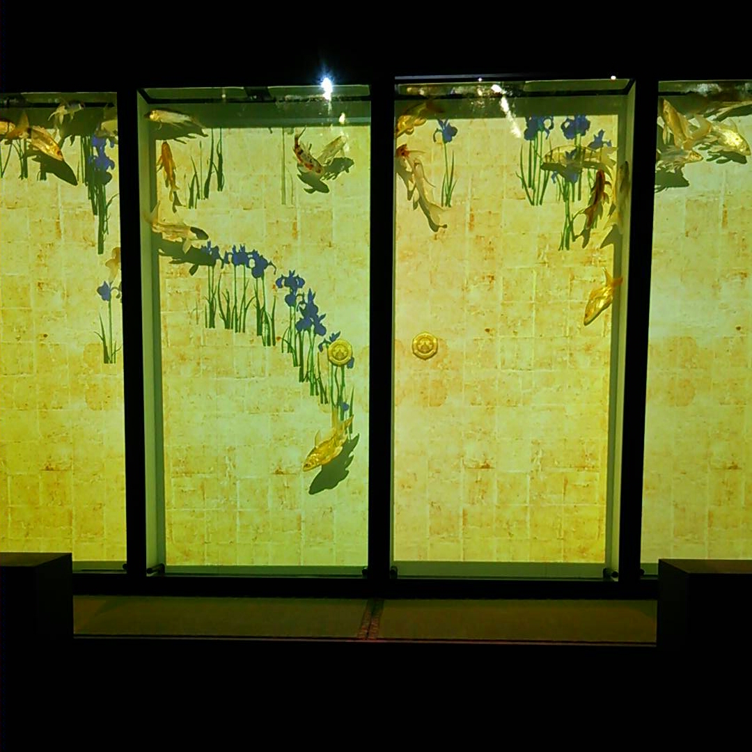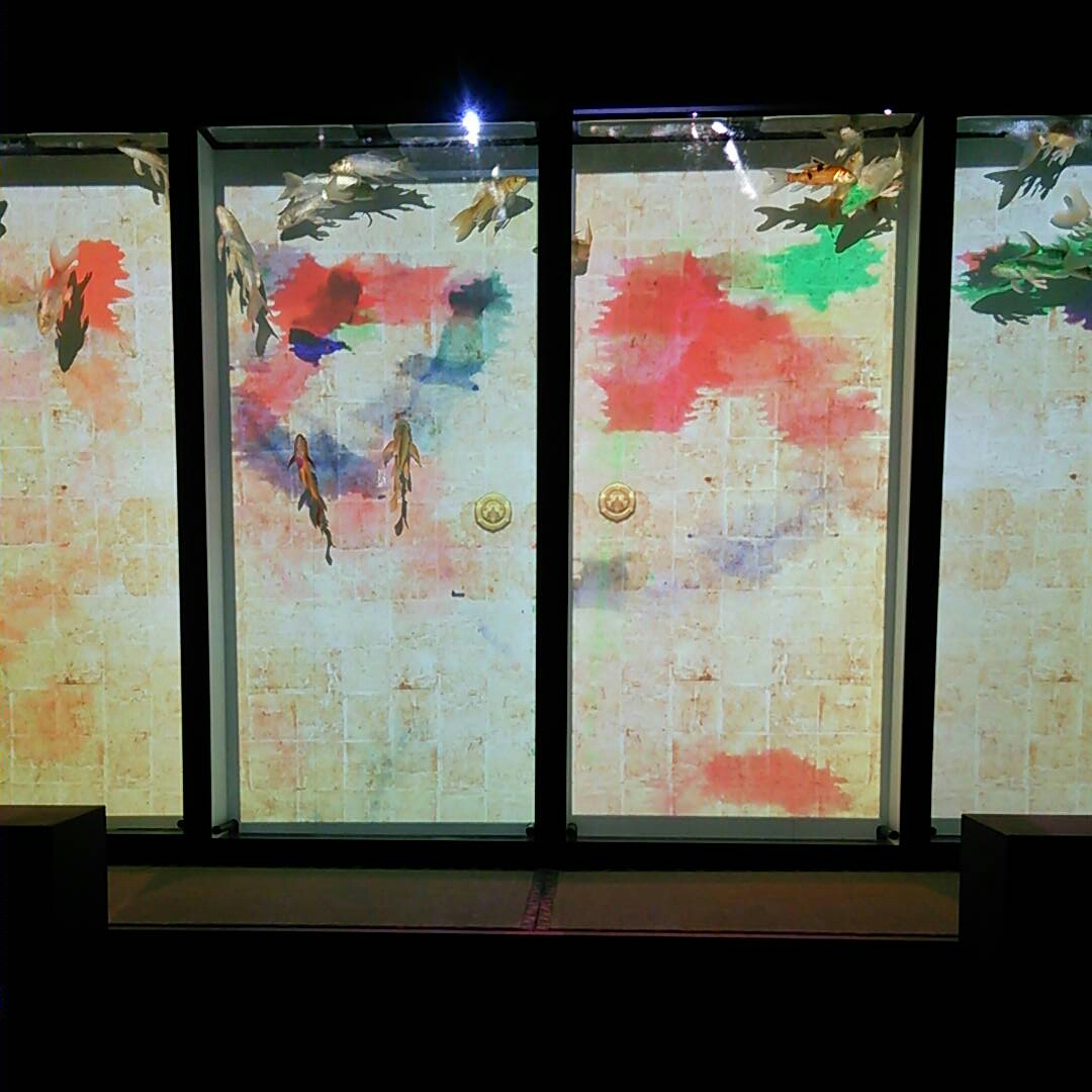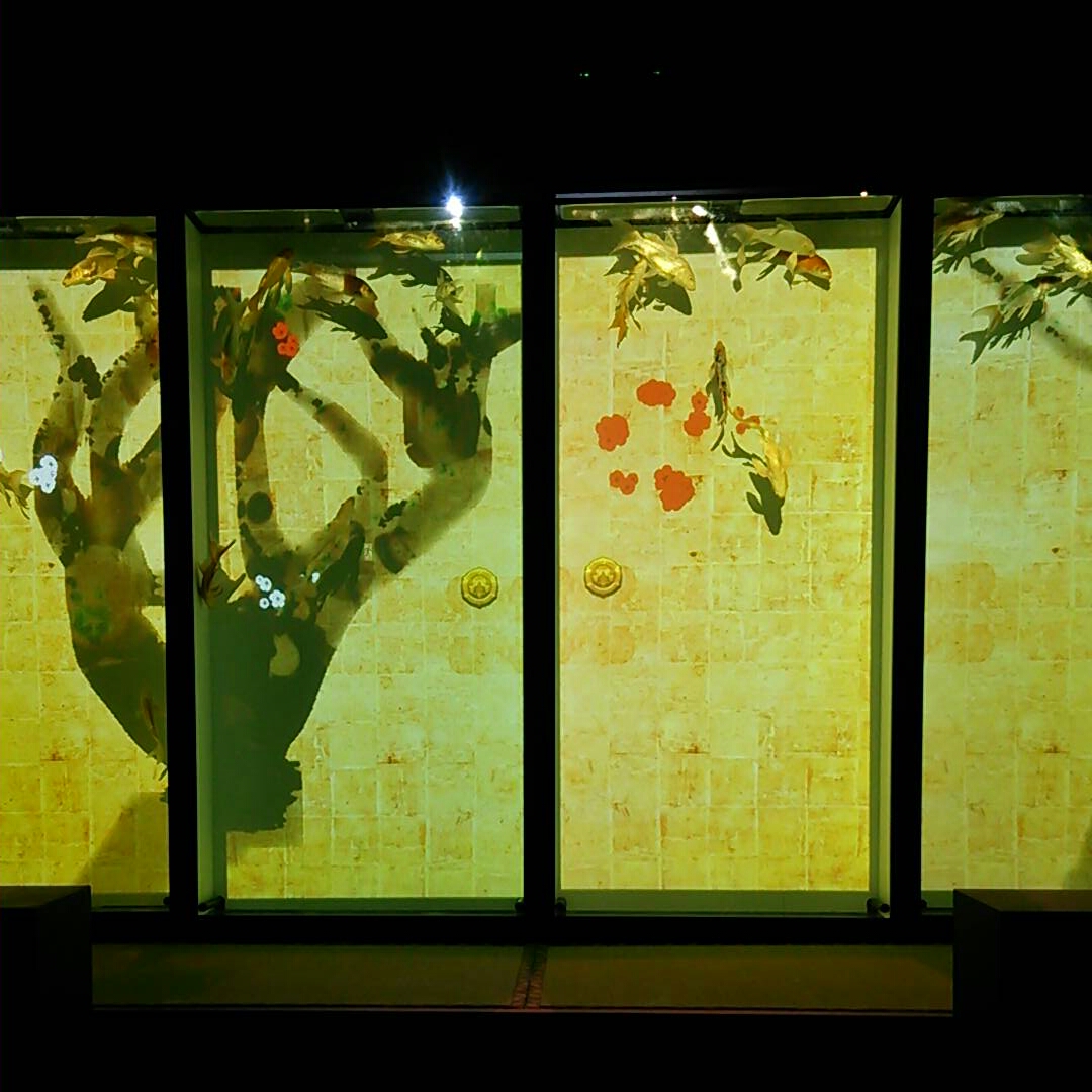 最後に襖の水槽を泳ぐ金魚。プロジェクションマッピング的な映像が見れます。