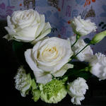 披露宴終わってからテーブルのお花とか持って行ってくださいって式場の方に言われる。高砂席のもよろしければ、と言われたとき、そこに立派な白い薔薇があったのを目ざとく見つけて遠慮なくそれをもぎ取ってきました。