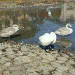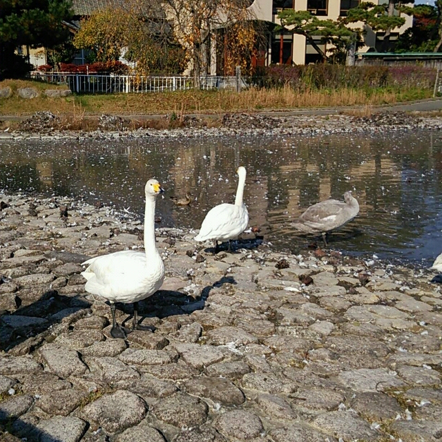 相変わらずまぬけな顔をしております。かわいい大きい。灰色のはまだ子どもの白鳥。
