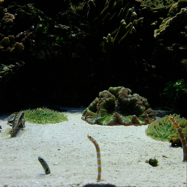 これピント合ってないんですけど手前にいるチンアナゴを撮りたかったのです。かわいい。