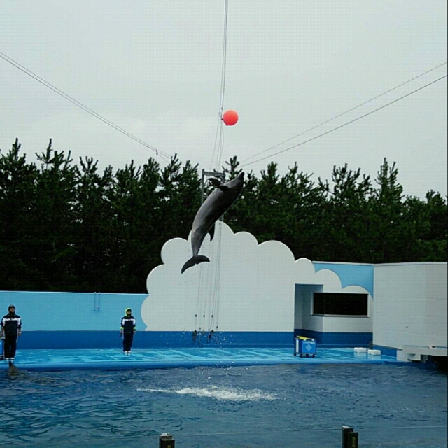 途中でイルカショーの時間になったので見てきました!