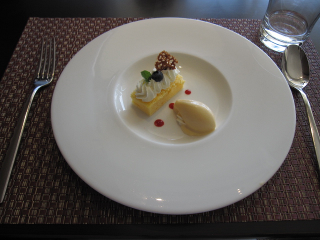 デザート有料なんですがつけちゃいました。ゆずのケーキとはちみつのアイス。
