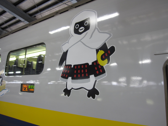 乗る新幹線の車体がSuicaペンギンにデコられててかわいい。東京・群馬・新潟をイメージしたデザインみたいです。