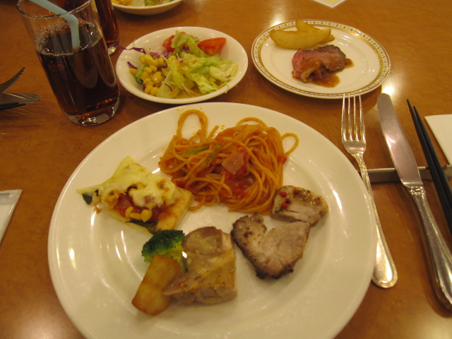 まずは洋食ー。ローストビーフとチキン香草焼きとポークのグリル!三大肉制覇(笑)