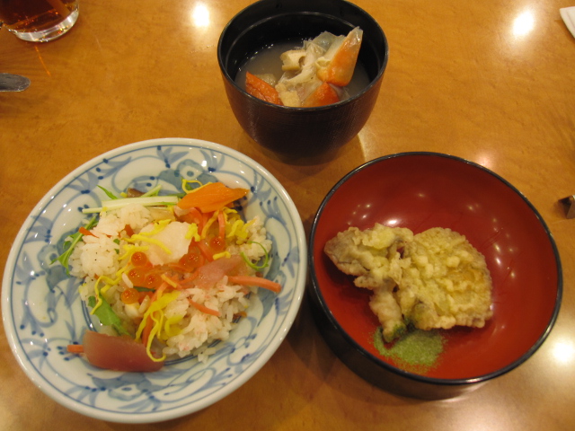 和食もあるよ!天ぷら!抹茶塩好きなのでテンションあがりました。