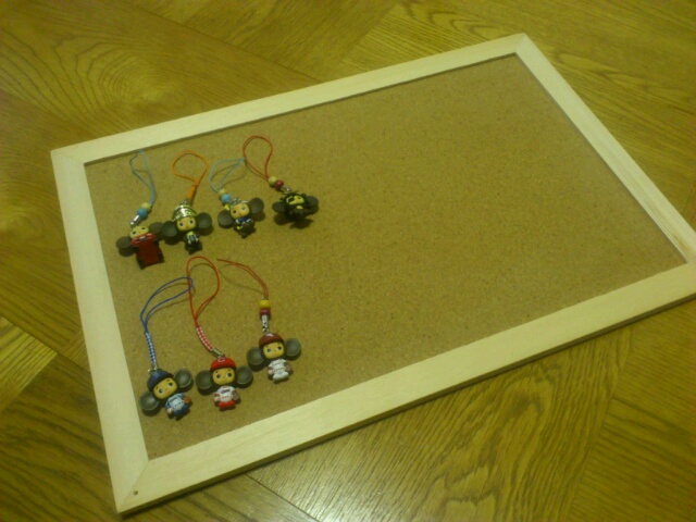 買ってきたコルクボードとピンで。