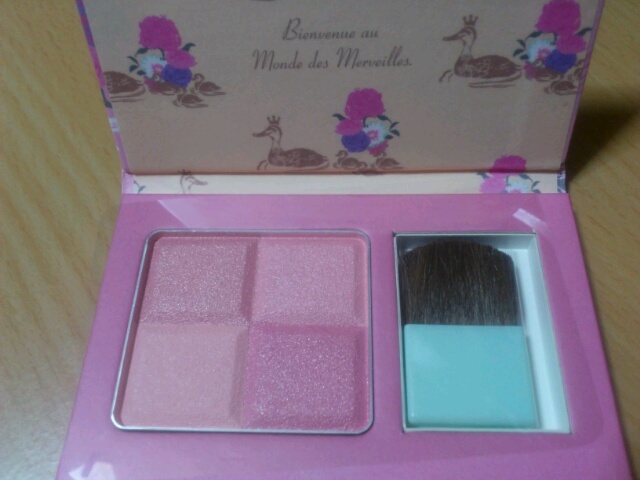 ちょうどチークも割れたのをもうプレスする気にもなれないまま、動かさないようにして使ってたので、新しいの欲しいとは思ってたんですよね。しかも四色チーク……これは危険だ。白鳥がかわいいけど、チークの色的にはカルガモかなぁ。