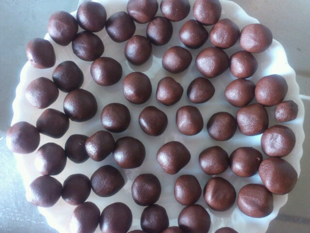 アーモンドもココアも、最後に粉糖をまぶします。これがないと甘くないんだそうです。